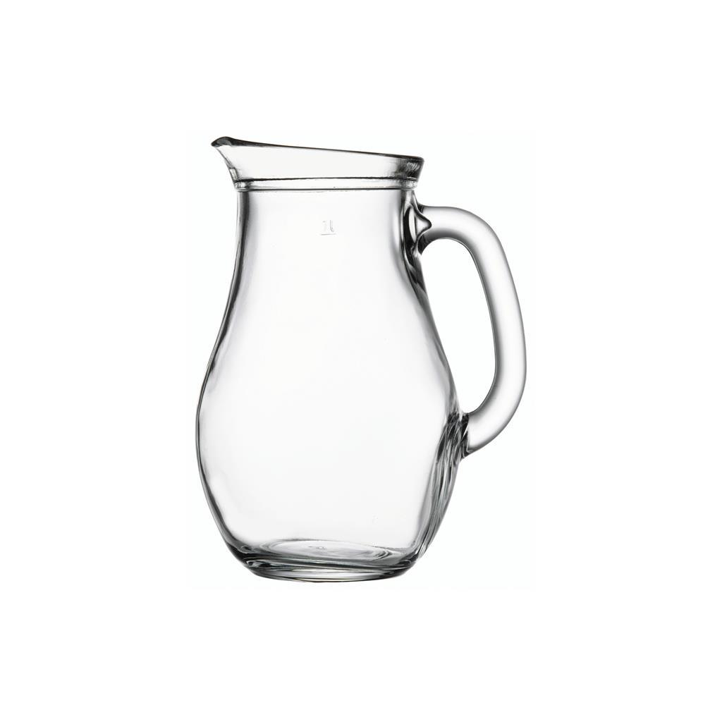 Stakleni vrč za vodu, sokove i alkoholna pića tradicionalnog oblika sa praktičnom ručkom za nošenje i kvalitetnom izradom od debljeg stakla, linija Bistro.