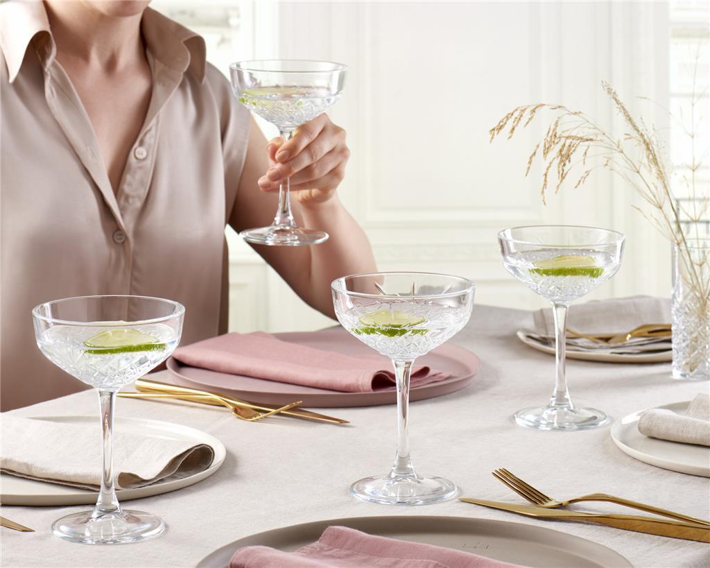 Kozarec coupe iz linije Timeless, bo zagotovo osvežil vašo postrežbo. Značilna retro, lomljena oblika stekla zelo lepo poudarja vsebino kozarca, zaradi tega bo izgledala vaša pijača še toliko bolje.