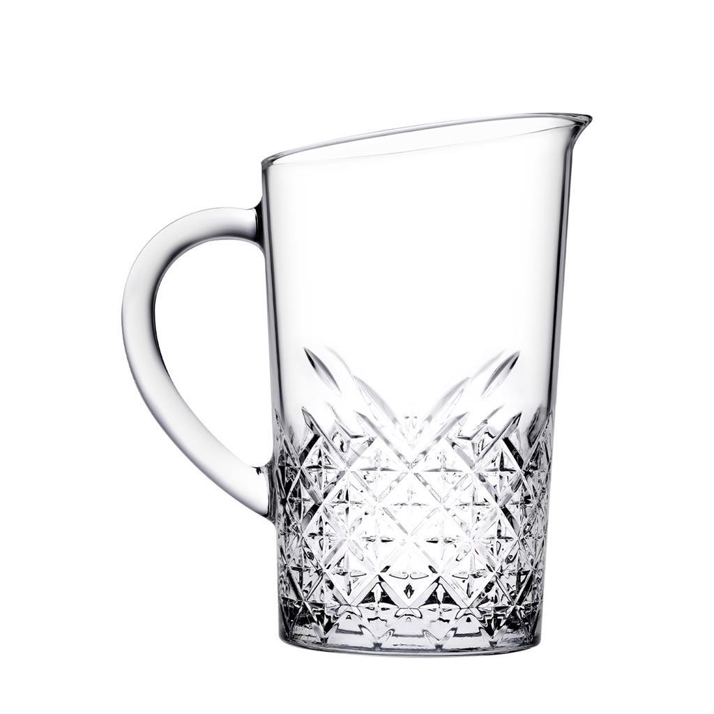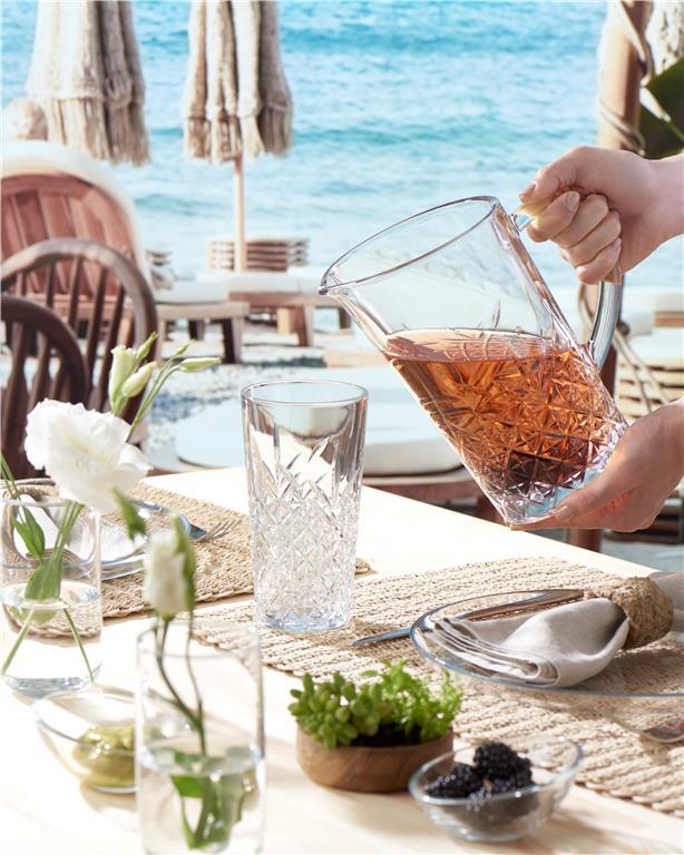 Stekleni vrč za vodo Timeless bo zagotovo osvežil vašo mizo. Značilna lomljena oblika zelo lepo poudarja vsebino kozarca, zaradi tega bo izgled vaše pogostitve še toliko boljši.