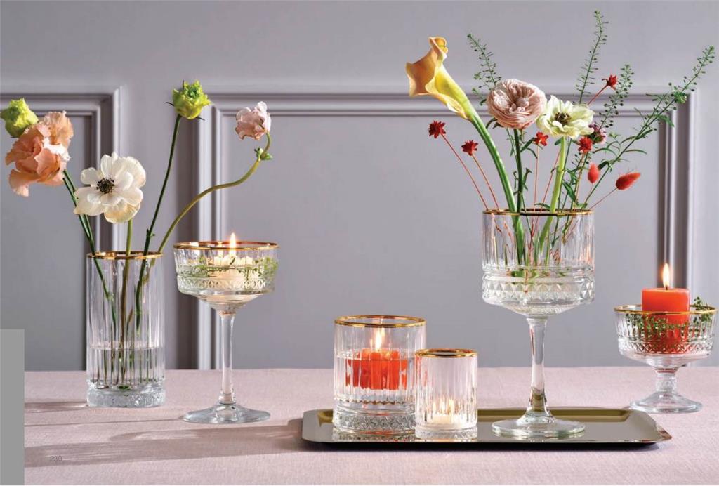 Kozarci za sok, vodo, kot tudi za alkoholne pijače v značilni retro obliki, ki jo zaznamuje linija Elysia. Dolgi navpični vzorci bodo poskrbeli, da bo prišla vaša pijača še toliko bolj do izraza, z dekorativnim zlatim robom pa bodo ti kozarci poskrbeli za še bolj retro izgled. Za zagotavljanje obstojnosti zlate barve, je za ta kozarec priporočljivo ročno pomivanje.