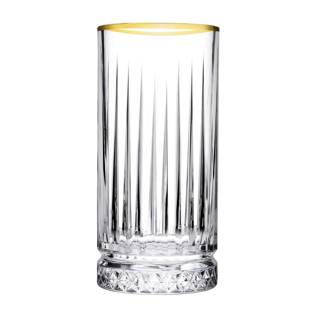 Kozarci za sok, vodo, kot tudi za alkoholne pijače v značilni retro obliki, ki jo zaznamuje linija Elysia. Dolgi navpični vzorci bodo poskrbeli, da bo prišla vaša pijača še toliko bolj do izraza, z dekorativnim zlatim robom pa bodo ti kozarci poskrbeli za še bolj retro izgled. Za zagotavljanje obstojnosti zlate barve, je za ta kozarec priporočljivo ročno pomivanje.