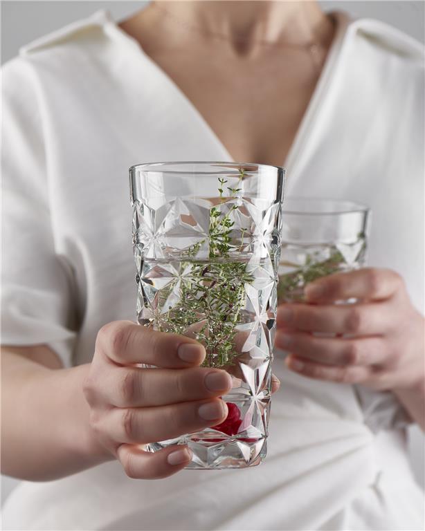 Estrella, kolekcija kozarcev, skled in krožnikov, ki se s svojim futurističnim dizajnom vrača nekoliko v preteklost. Zvezdast vzorec je proizveden z uporabo čisto novih tehnologij, kar bo pomenilo, da bo z novo obliko linija Estrella zagotovo jemala dih. Vaše prezentacijo bodo tako še toliko lepše.
