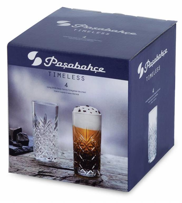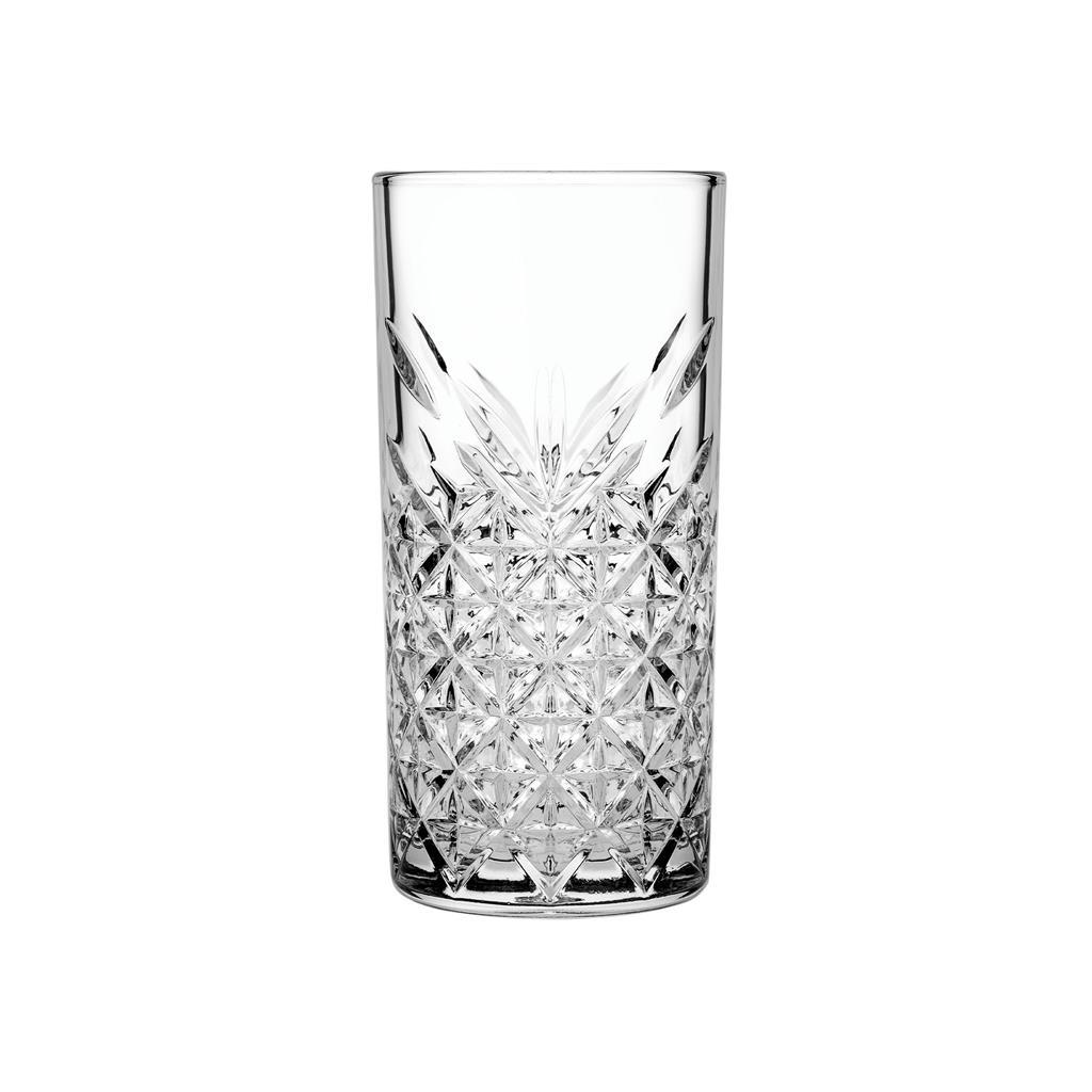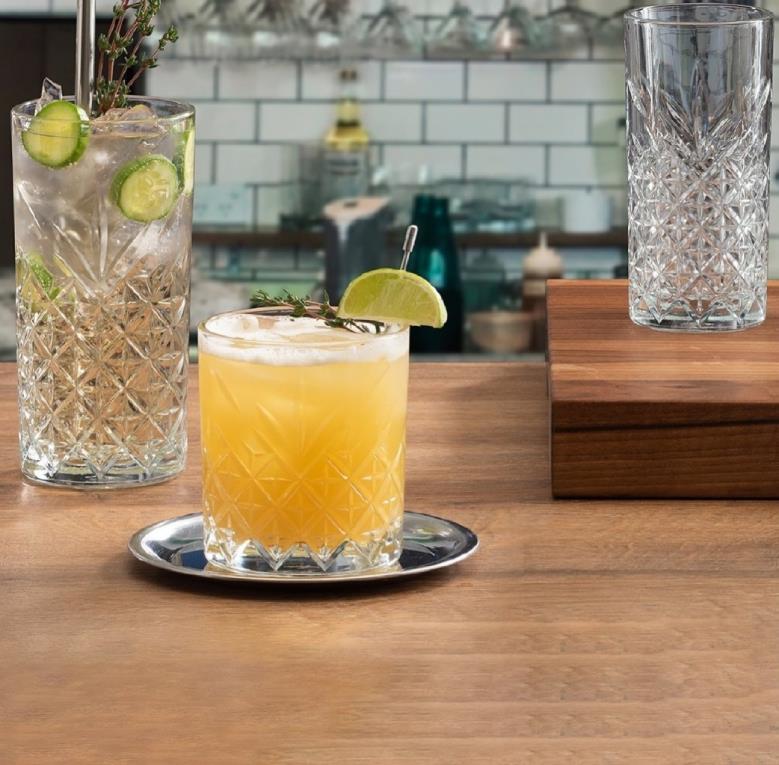 Long Drink kozarec iz linije Timeless bo zagotovo osvežil vašo mizo. Značilna retro, lomljena oblika stekla zelo lepo poudarja vsebino kozarca, zaradi tega bo izgledala vaša pijača še toliko bolje.
