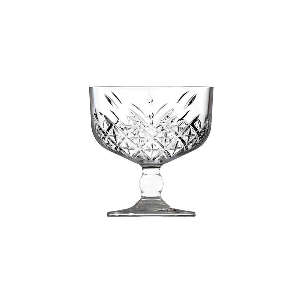 Kozarec za sadno kupo iz linije Timeless, bo zagotovo osvežil vašo postrežbo. Značilna retro, lomljena oblika stekla zelo lepo poudarja vsebino kozarca, zaradi tega bo izgledala vaša prezentacija še toliko bolje.