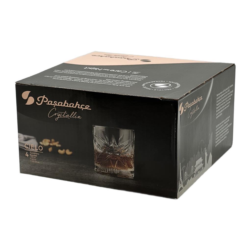 Kozarci za whiskey iz linije Cielo, ki jih proizvaja Pasabahce Crystallin, so oblikovani z namenom zagotavljanja vrhunskega okusa in vonja njihove vsebine. Izdelani so iz najboljšega kristala brez svinca, navkljub svojemu posebnemu izgledu pa ostajajo še vedno izredno vzdržljivi, zaradi česar so primerni tudi za vsakodnevno uporabo.