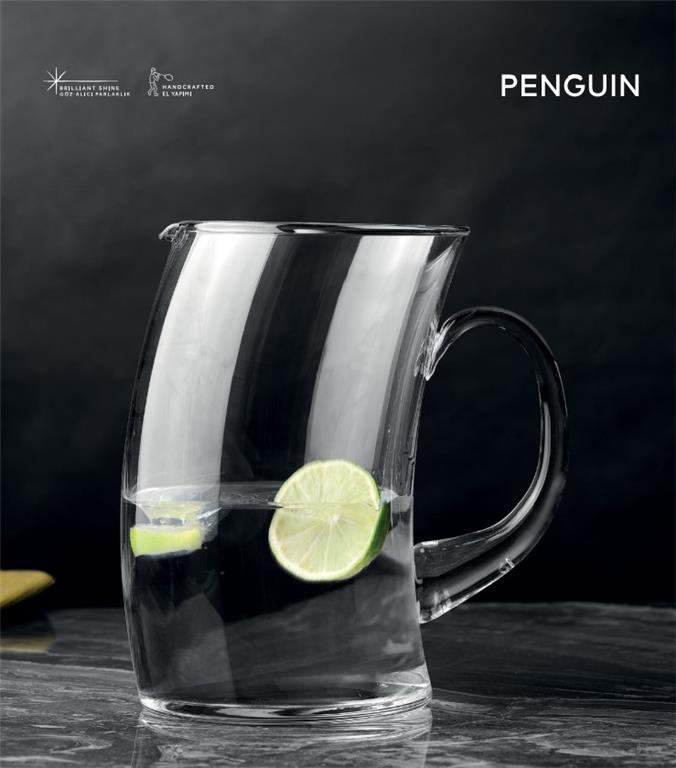 Vrč iz kristalnega stekla iz linije Penguin, proizvajalca Pasabahce Crystallin, je ročno delan z namenom zagotavljanja vrhunske izkušnje pri vsakem serviranju. Izdelan je iz kvalitetnega kristala brez svinca, navkljub tankim stenam pa zaradi kvalitetnega materiala ostaja še vedno izredno vzdržljiv, zaradi česar je primeren tudi za vsakodnevno uporabo.