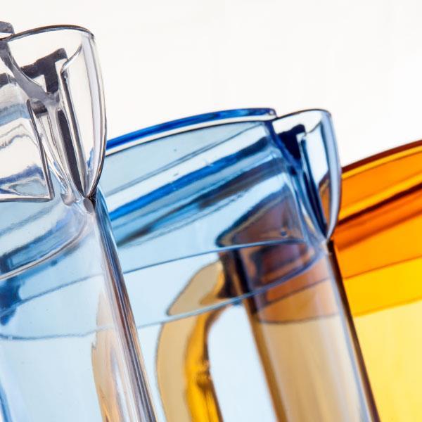 Izdelki narejeni iz polikarbonata so znani po svoji trdnosti in odpornosti in so kot taki idealni za postrežbo na prostem, ob bazenih, piknikih...