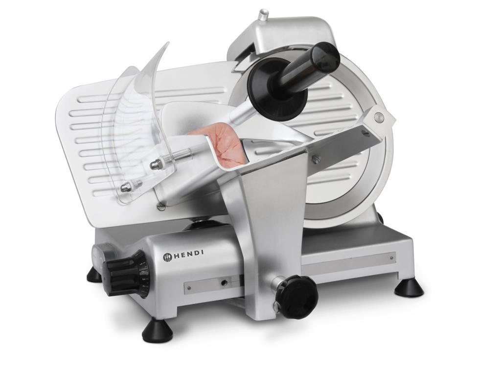Profesionalna salamoreznica proizvajalca Hendi je namenjena profesionalnim kot tudi komercialnim uporabnikom. Salamoreznica ima posebej obdelano aluminijasto ohišje in stoji na nedrsečih podstavkih. Rezilo salamoreznice je narejeno iz utrjenega nerjavečega jekla, salamoreznica pa ima vgrajen brusilec rezila in zaščito nad rezilom, ki varuje pred poškodbam. Zračno hlajen motor slamoreznice s 280W je dovolj močan za rezanje tudi trših živil. Debelina rezanja se nastavlja brezstopenjsko.