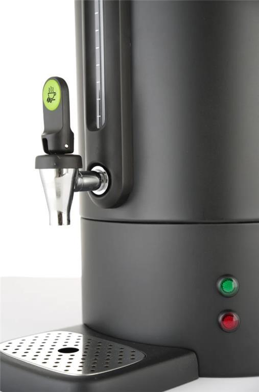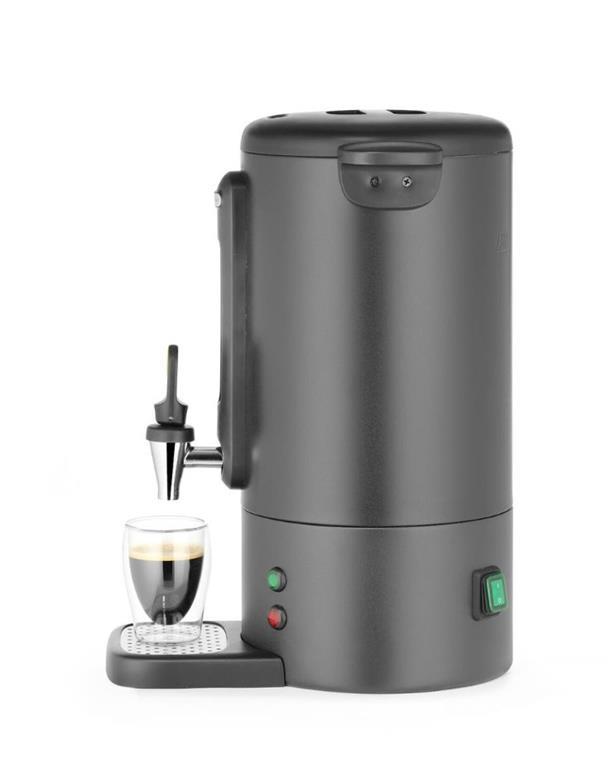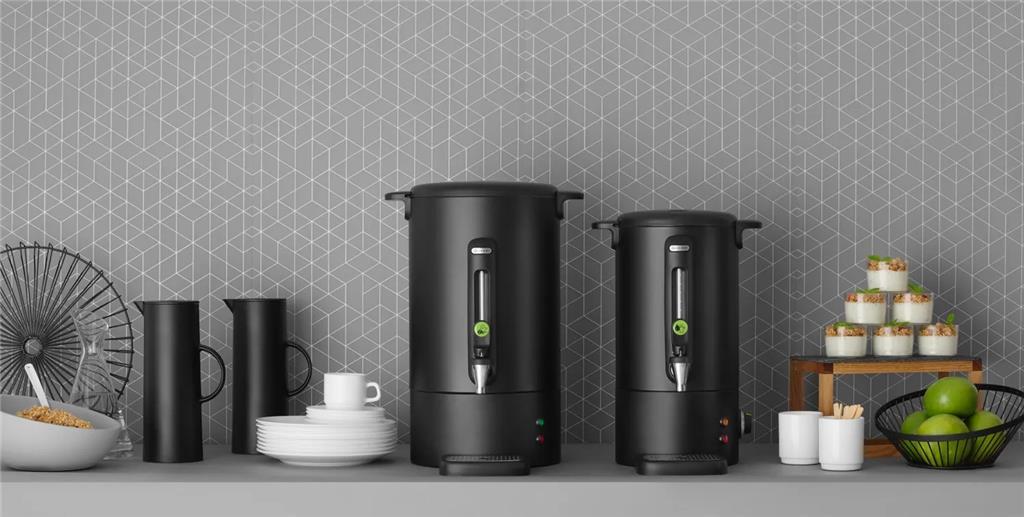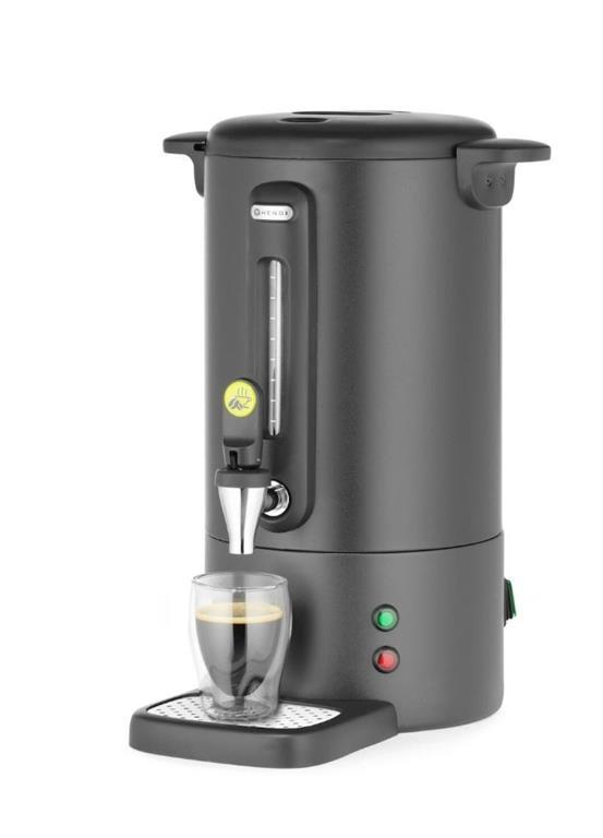Perkolator HENDI UNIQ je izdelan z natančnostjo in slogom – s svojo elegantno mat črno površino izstopa na vsakem bifeju. Opremljen je s praktičnimi funkcijami, kot so pipica proti kapljanju, kazalnik nivoja vode in samodejno ohranjanje toplote, kar zagotavlja gladko in zanesljivo postrežbo vročega napitka pri vsaki pripravi.