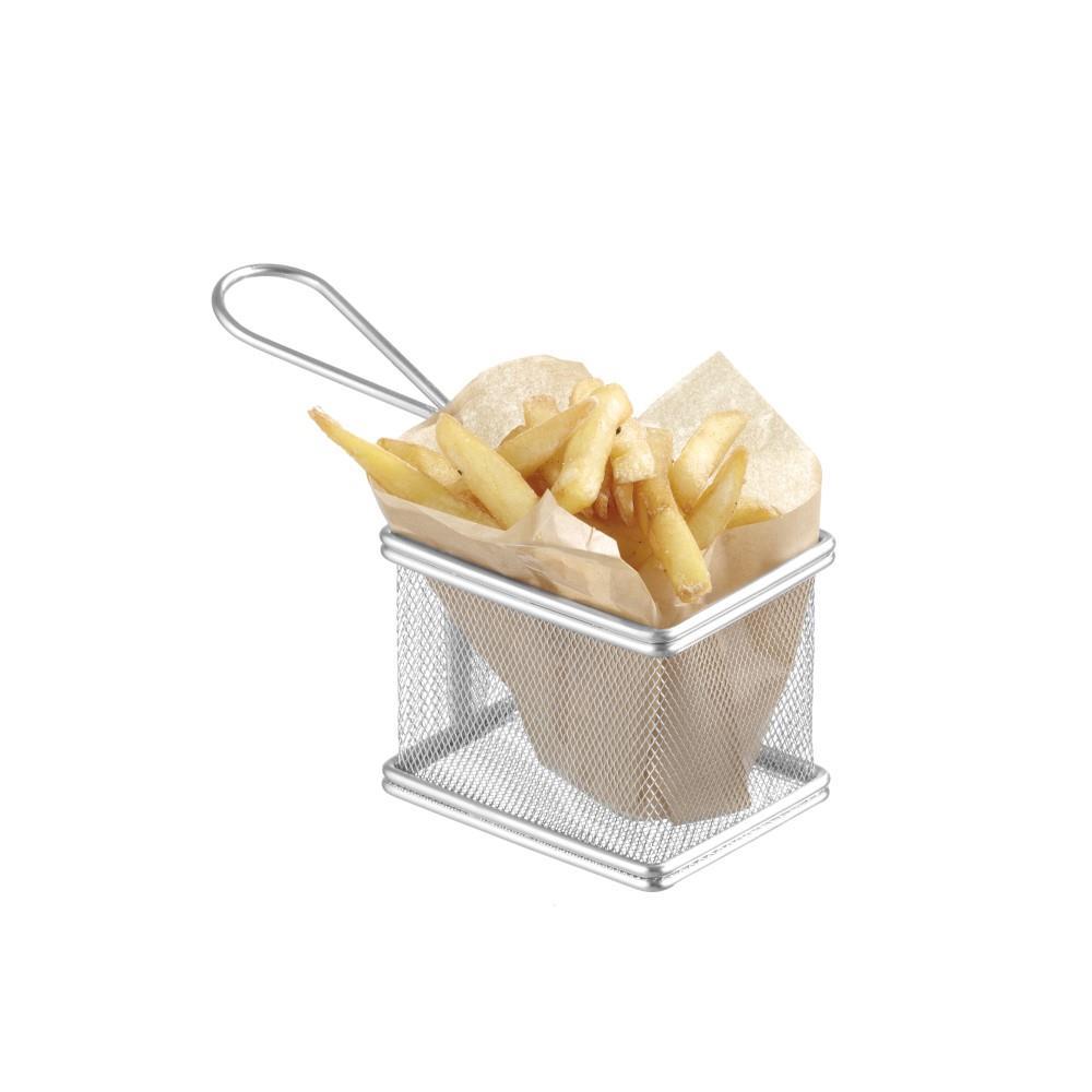 Servirna košarica za krompir in podobne priloge v obliki košarice za fritezo.