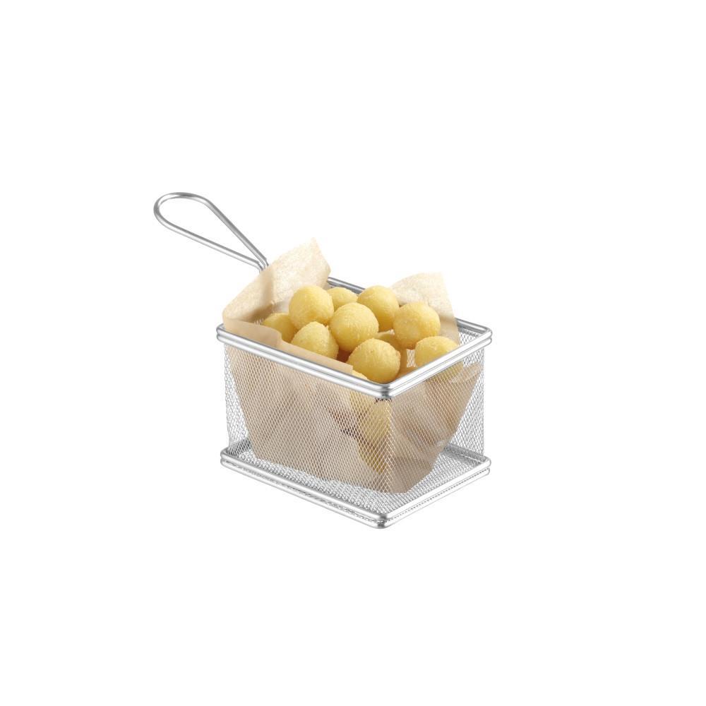 Servirna košarica za krompir in podobne priloge v obliki košarice za fritezo.