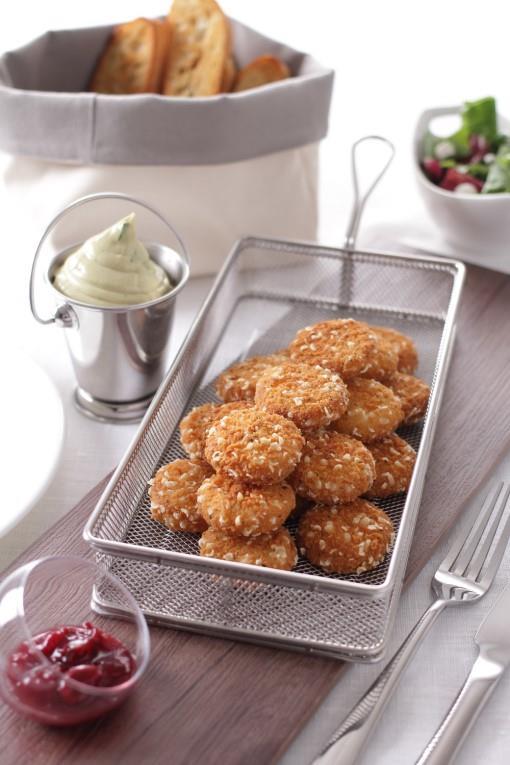 Servirna košarica za krompir in podobne priloge v obliki košarice za fritezo.