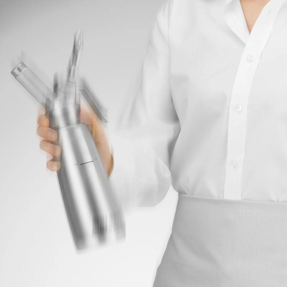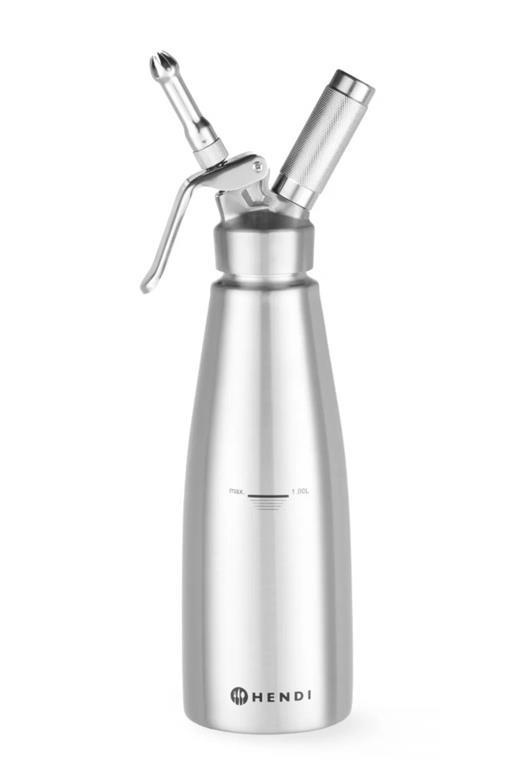 Aparat za pripravo smetane in drugih kremastih pripravkov Hendi Master Whip, narejen iz nerjavečega jekla.