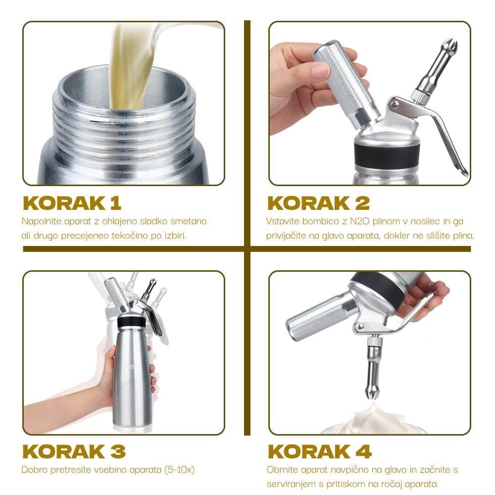 - Za pripravo okusne stepene smetane, moussov, sladic, espum in omak.