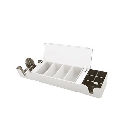 Stojalo za serviete in slamice, za urejanje barskega pulta in delovne površine. Postavitev, ki barmanu omogoča, da so najpomembnejše stvari vedno pri roki.