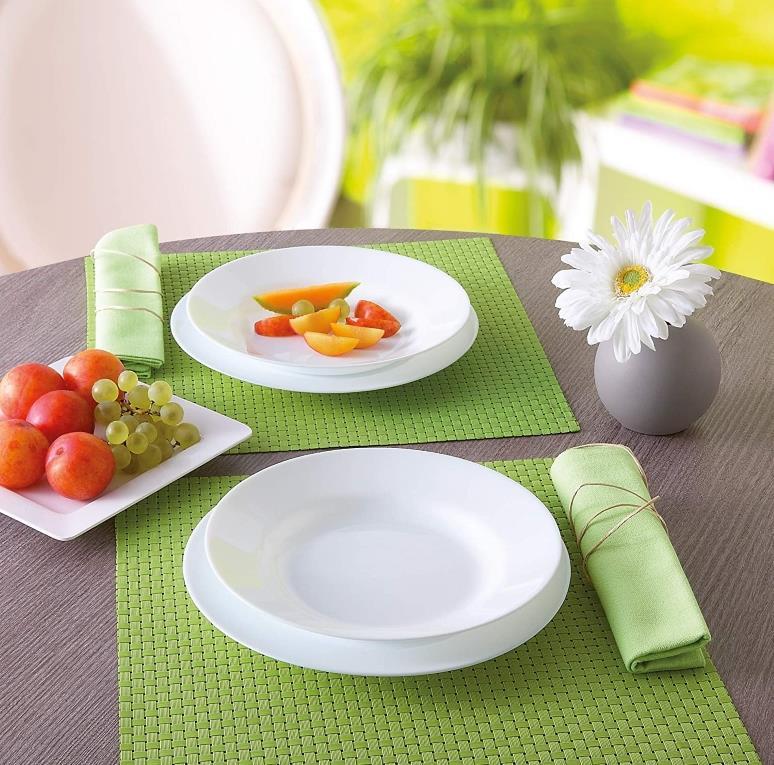Izdelek je narejen iz opalnega stekla s postopkom, kjer v steklo vmešajo belo barvo. V primerjavi z enako velikim izdelkom iz porcelana ima ta manjšo maso, prav tako se robovi manj krušijo.