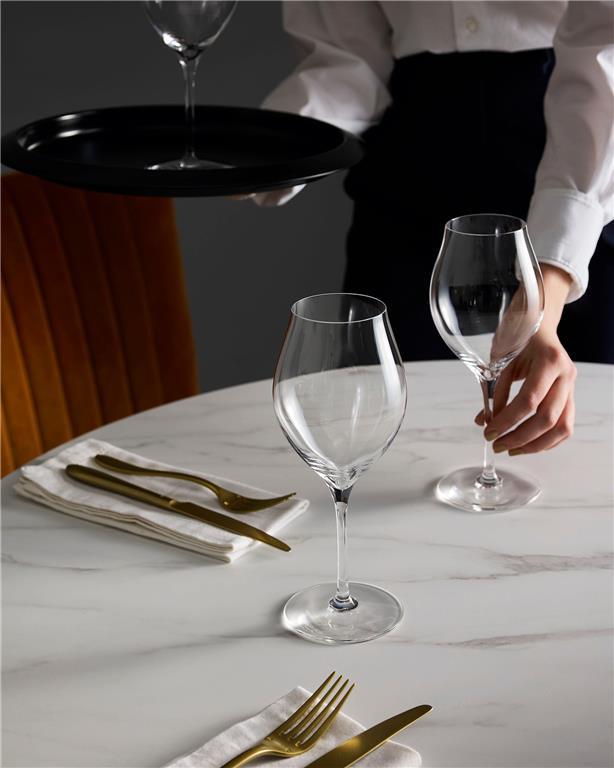 Linija Exaltation združuje svojo posebno obliko, dolg in tanek pecelj ter bleščeč izgled v izjemno harmonično silhueto, ki je primerna za uporabo s prav vsemi variacijami vin.