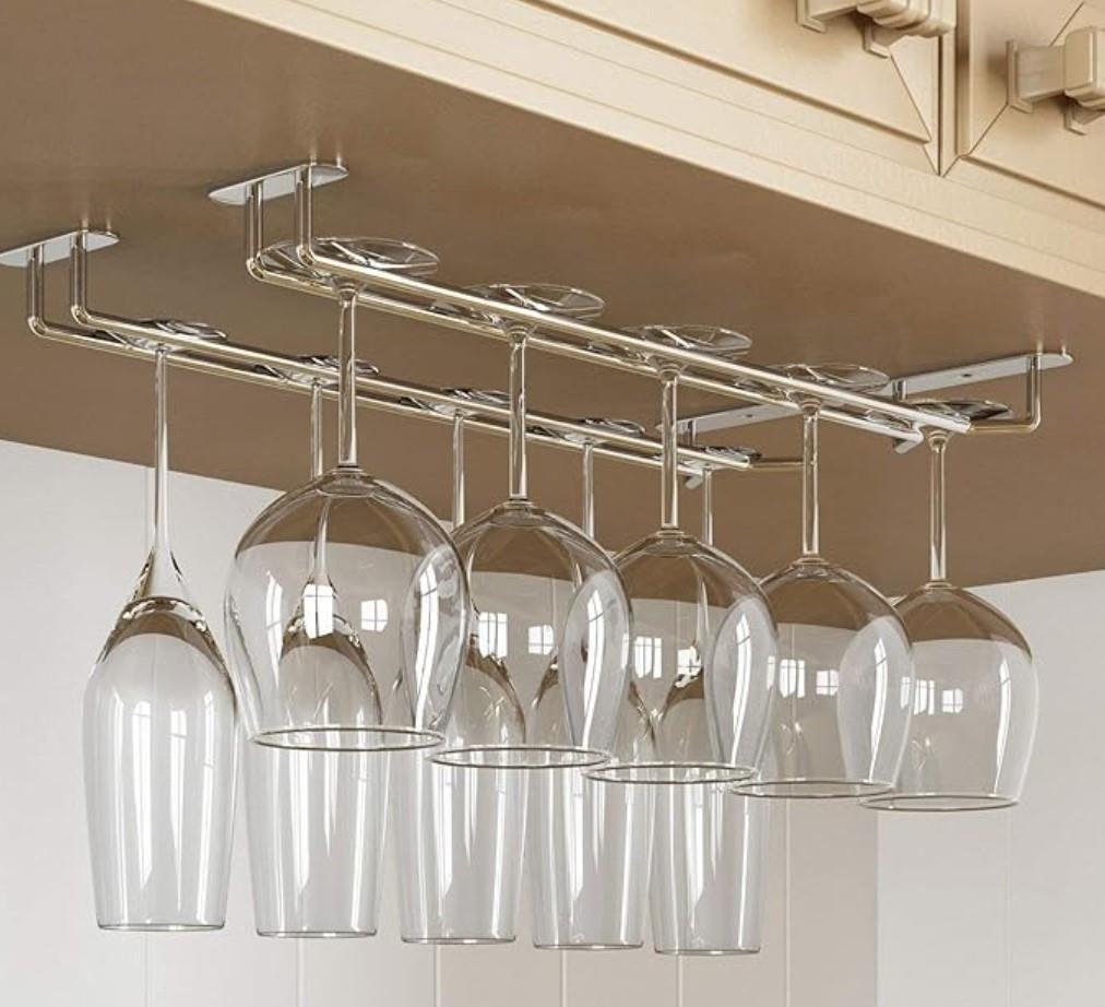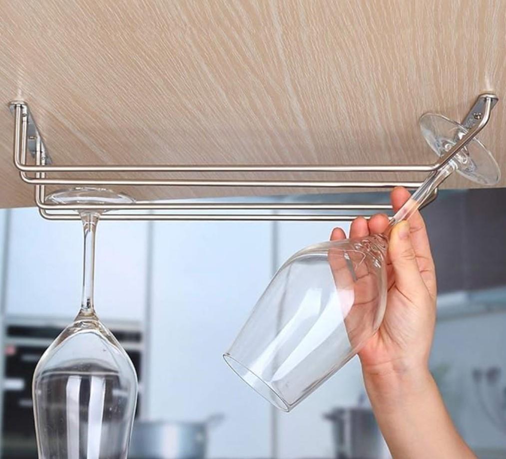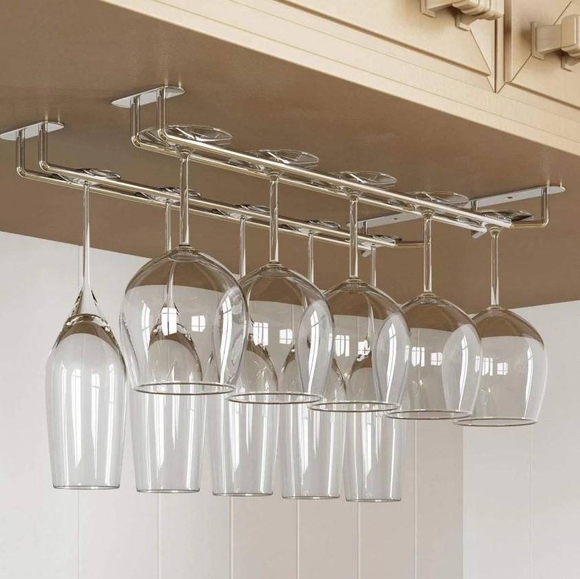 Nosilec za kozarce iz nerjavečega jekla, primeren za pritrditev na strop, za enostavnejše shranjevanje kozarcev.