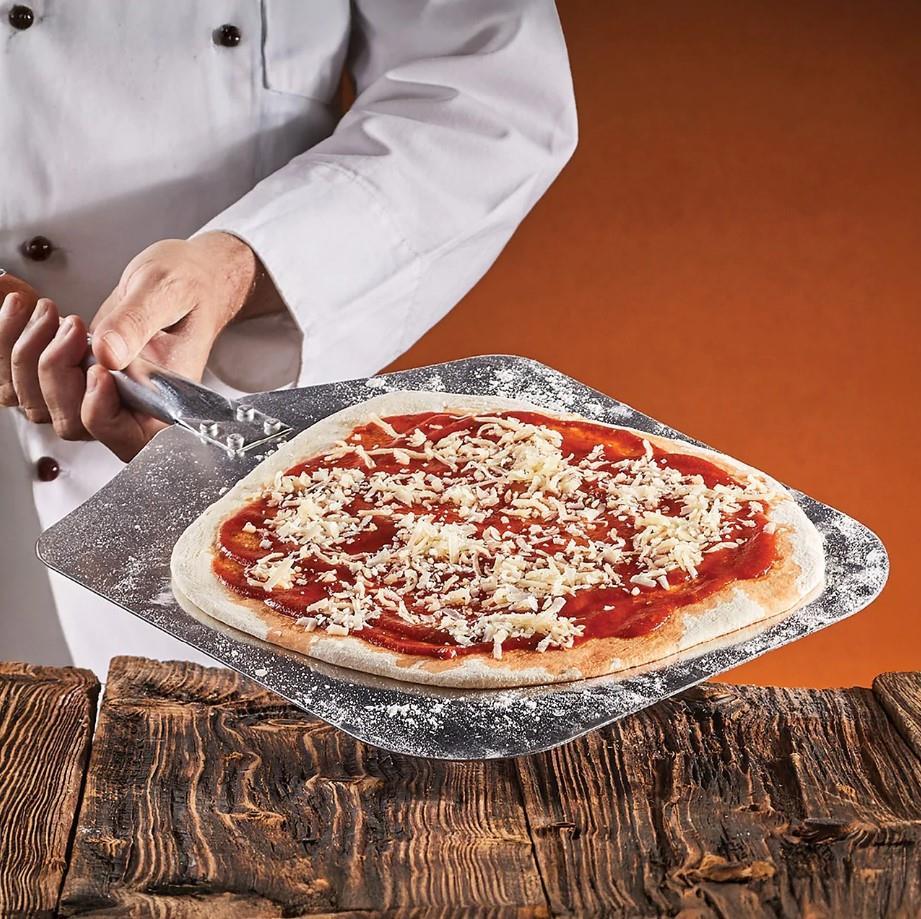 Lopar za pizzo premera 30cm in dolžine ročaja 91cm, narejen iz aluminija in primeren tudi za profesionalno uporabo.