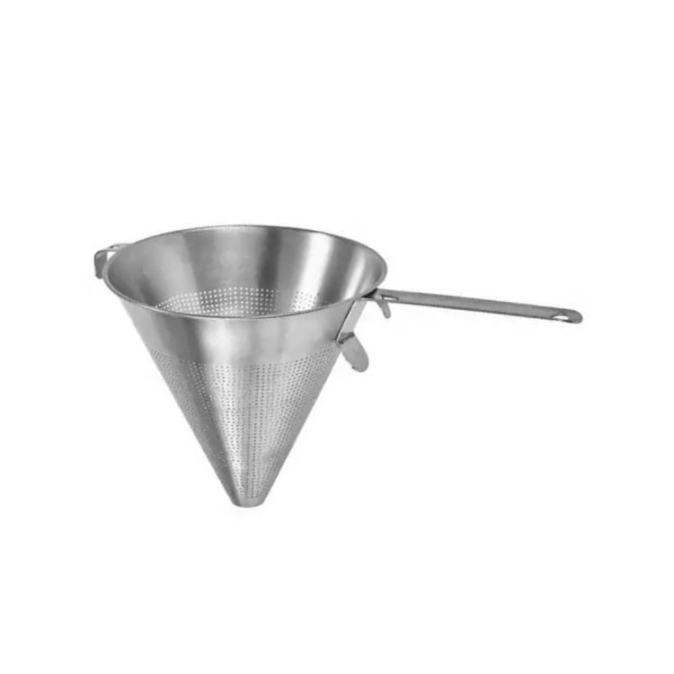Konusno cedilo iz nerjavečega jekla, brez mrežice, primerno za profesionalno in intenzivnejšo uporabo.