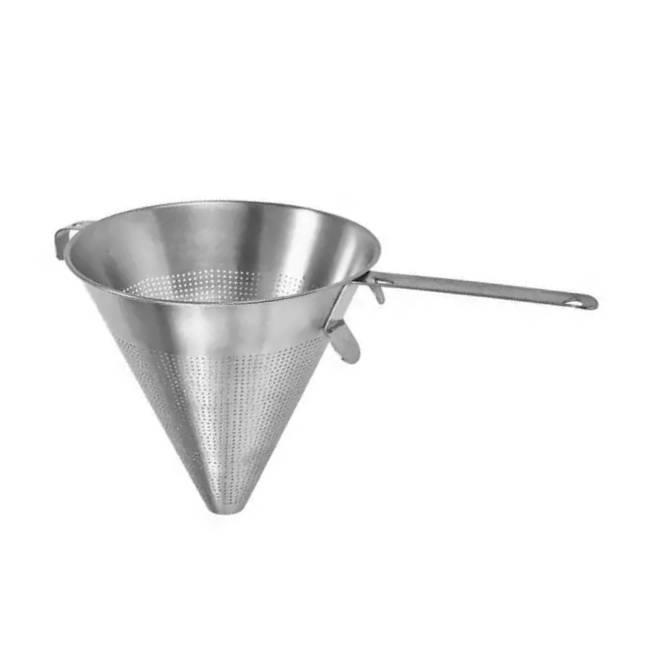 Konusno cedilo iz nerjavečega jekla, brez mrežice, primerno za profesionalno in intenzivnejšo uporabo.