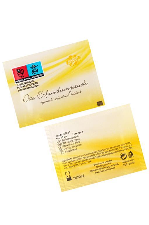 Vlažilni robčki za brisanje rok pred in po jedi. Osvežilni robčki predstavljajo idealno rešitev pri postrežbi.
